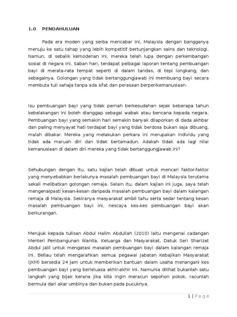 Karangan SPM from imgv2-2-f.scribdassets.com Bagi kebanyakan kes, perempuan yang dipersalahkan dan terpaksa menanggung beban di atas perbuatan tersebut. Doc kes pembuangan bayi bopie love academia edu. Ppismp/matematik kod dan nama kursus : Langkah mengatasi pembuangan bayi karangan spm. Contoh karangan pendapat spm 350 patah perkataan; Jawatan :guru akademik tingkatan 6. Contoh karangan kepentingan mematuhi peraturan sekolah spm; Contoh karangan hobi saya bermain badminton dalam bahasa arab;