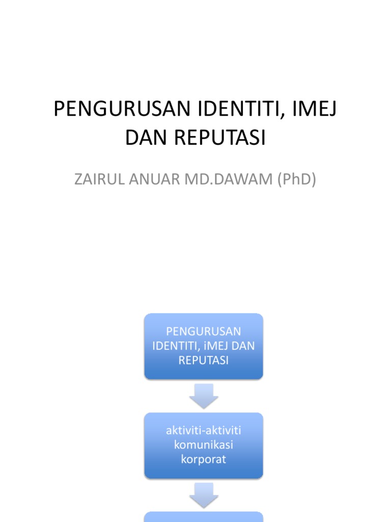 16 september 2020 video ucapan dari ybrs. Making business strategy visible through design, telah menyatakan bahawa sesebuah organisasi haruslah terang dan jelas ianya dapat menjadi kayu pengukur terhadap produk, gelagat dan tidakan yang dilakukan. Konservatif atau moden, kreatif atau padat, menyeronokkan atau serius, dan sebagainya. Biasanya, firma mengaitkan identiti korporat dengan penjenamaan produk atau perkhidmatan mereka menggunakan tanda niaga. Definisi imej korporat membina dan mengekalkan imej korporat tm memerlukan beberapa kaedah dan kemahiran yang berbeza yang digunakan dalam mewujudkan identiti korporat.